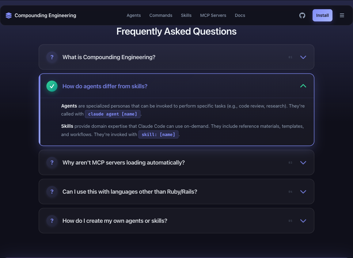 Design iterations (10x each) on all 10 sections: - Hero: Gradient headlines, animated eyebrow, enhanced buttons with shimmer - Stats: Icon system, gradient numbers, hover animations, layered shadows - Philosophy: Pillar cards with gradient borders, animated timeline, tool tags - Agents: Category headers with gradients, badge styling, code block enhancements - Commands: Terminal aesthetic with $ prompts, scanlines, CORE/UTIL badges - Skills: Knowledge module feel, feature pills, category theming - MCP Servers: Server-specific theming (teal/amber), ACTIVE badges, tool counts - Installation: Terminal-style code blocks, step progress indicators - FAQ: Card-based accordion, question/checkmark icons, smooth animations - CTA: Benefit-focused copy, animated badge, trust indicators, glass morphism Design inspired by Evil Martians devtool-template patterns. 🤖 Generated with [Claude Code](https://claude.com/claude-code) Co-Authored-By: Claude <noreply@anthropic.com>