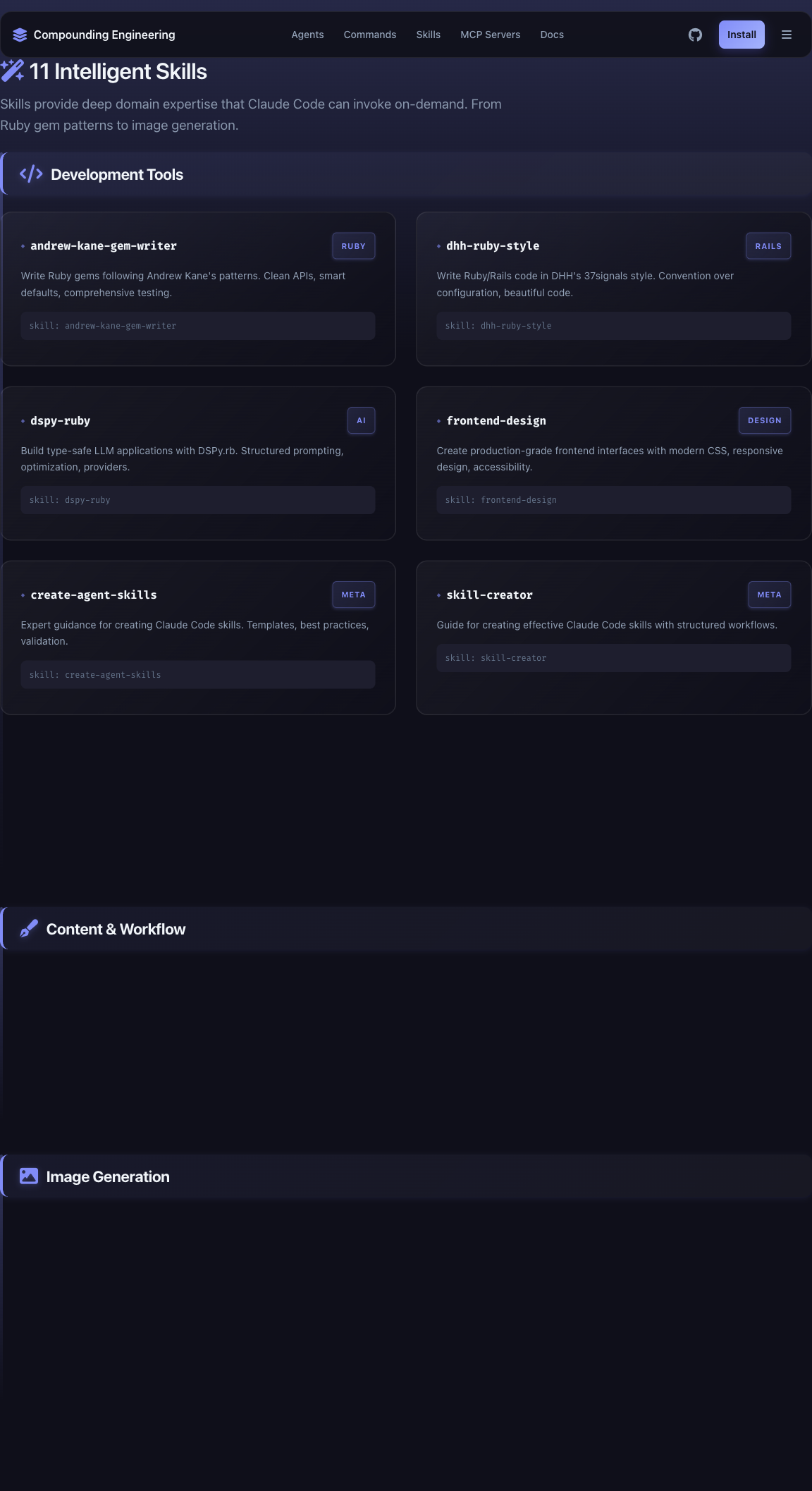 Design iterations (10x each) on all 10 sections: - Hero: Gradient headlines, animated eyebrow, enhanced buttons with shimmer - Stats: Icon system, gradient numbers, hover animations, layered shadows - Philosophy: Pillar cards with gradient borders, animated timeline, tool tags - Agents: Category headers with gradients, badge styling, code block enhancements - Commands: Terminal aesthetic with $ prompts, scanlines, CORE/UTIL badges - Skills: Knowledge module feel, feature pills, category theming - MCP Servers: Server-specific theming (teal/amber), ACTIVE badges, tool counts - Installation: Terminal-style code blocks, step progress indicators - FAQ: Card-based accordion, question/checkmark icons, smooth animations - CTA: Benefit-focused copy, animated badge, trust indicators, glass morphism Design inspired by Evil Martians devtool-template patterns. 🤖 Generated with [Claude Code](https://claude.com/claude-code) Co-Authored-By: Claude <noreply@anthropic.com>